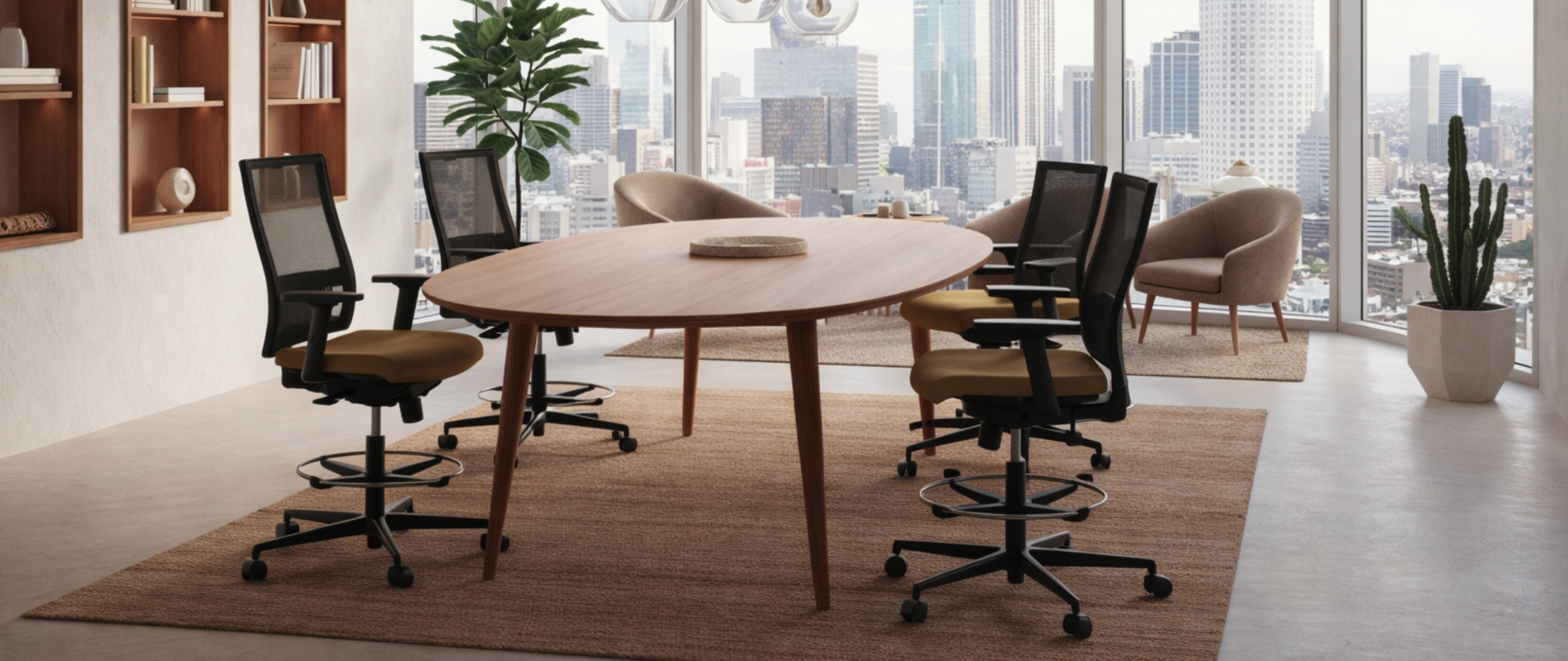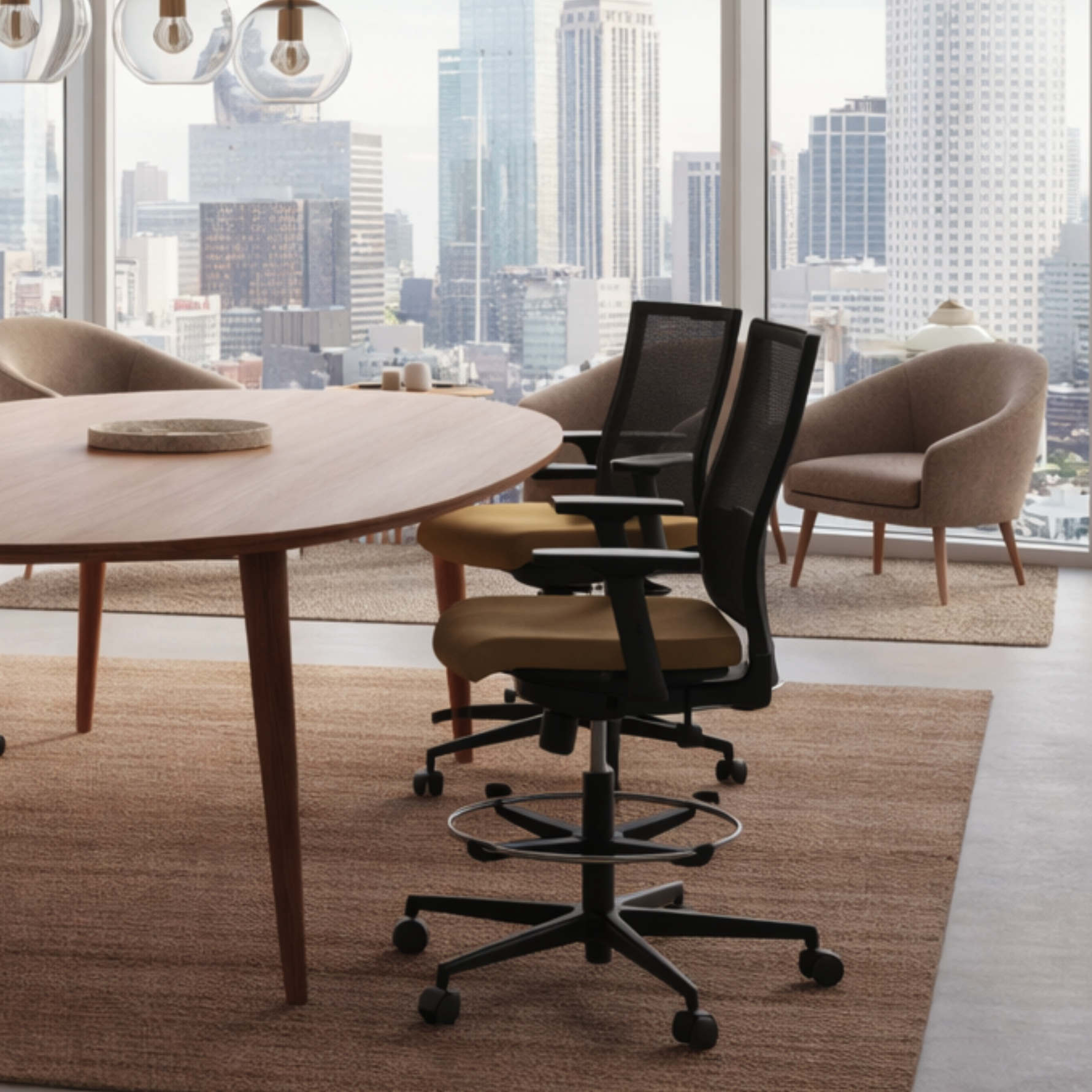 Assise tapissée tous tissus, réglable en hauteur, dossier résille (7 couleurs au choix), repose-pied chrome et réglable en hauteur.