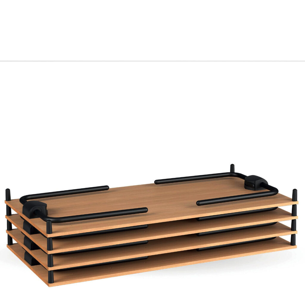 Options: Plateau en mélamine (8 couleurs au choix), chariot de transport, système de liaison rapide, barres de renfort