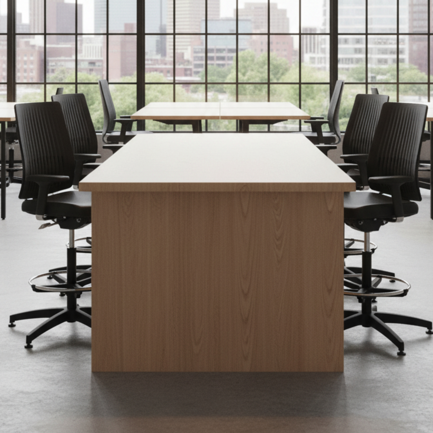 BOSTON-D est un siège dessinateur, confortable, style universel, dossier résille ou en polyuréthane (PU), de fabrication française, mécanisme synchrone, réglable en hauteur, assise tapissée, patins, base étoile