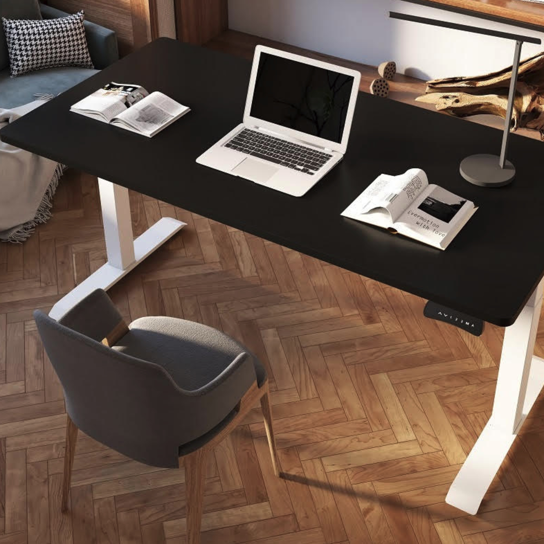 CHRONO est une table réglage en hauteur grâce à une motorisation intégrée, fonctionnelle, professionnelle, pour bureau, idéal pour travail sur ordinateur debout et assis (pour ceux qui ont mal au dos), finitions époxy