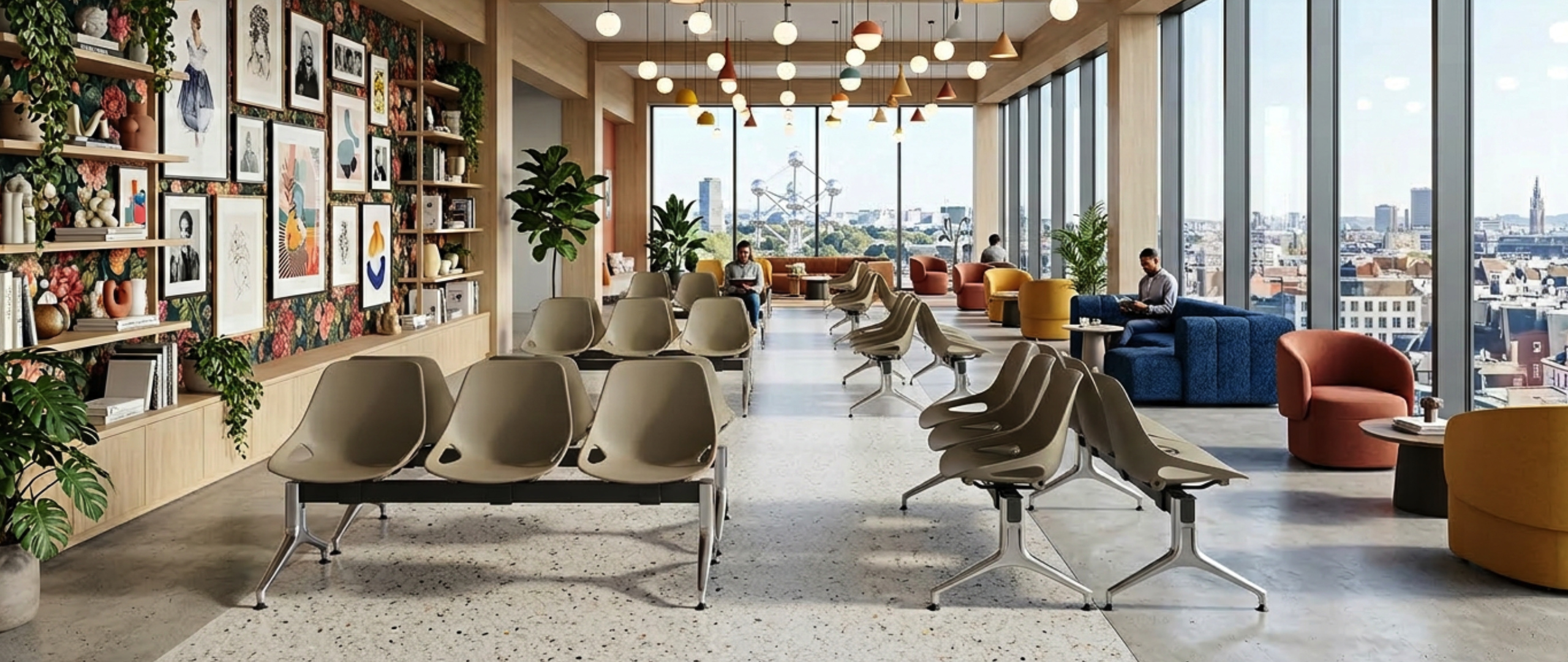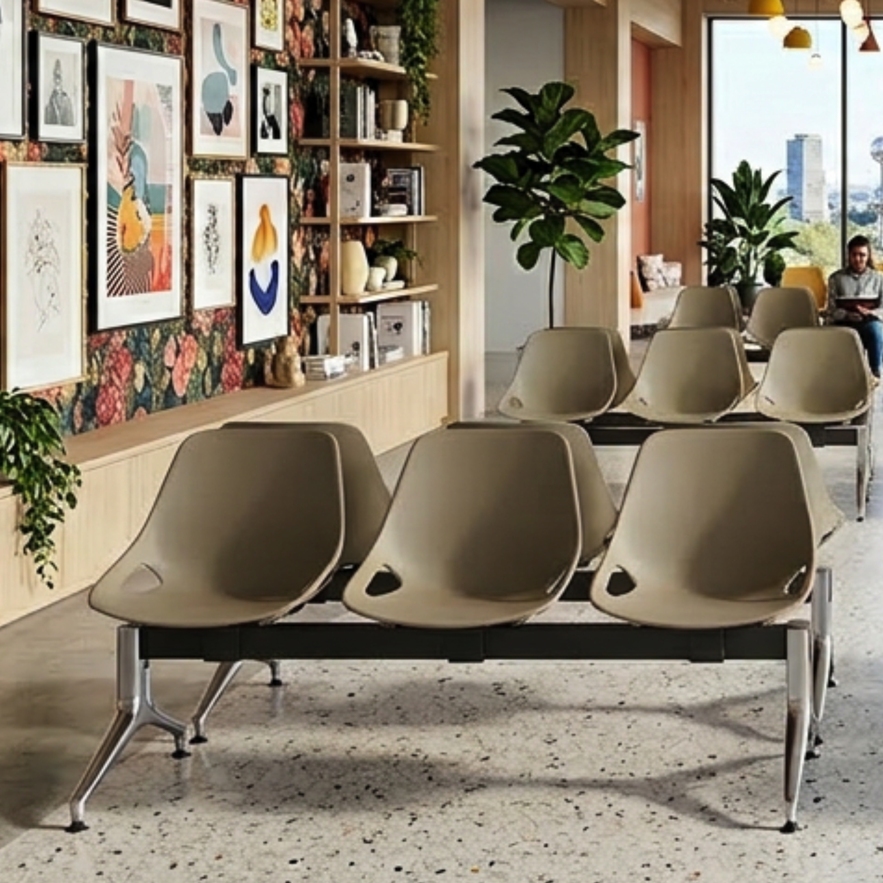 CITY-POUTRE est une poutre d’attente, confortable, monocoque plastique, fonctionnelle, actuelle, couleurs tendances, polypropylène, modulable, mobile, avec 2 à 5 places, assise tapissée, finition époxy, piètement à fixer au sol, tablette porte-revue