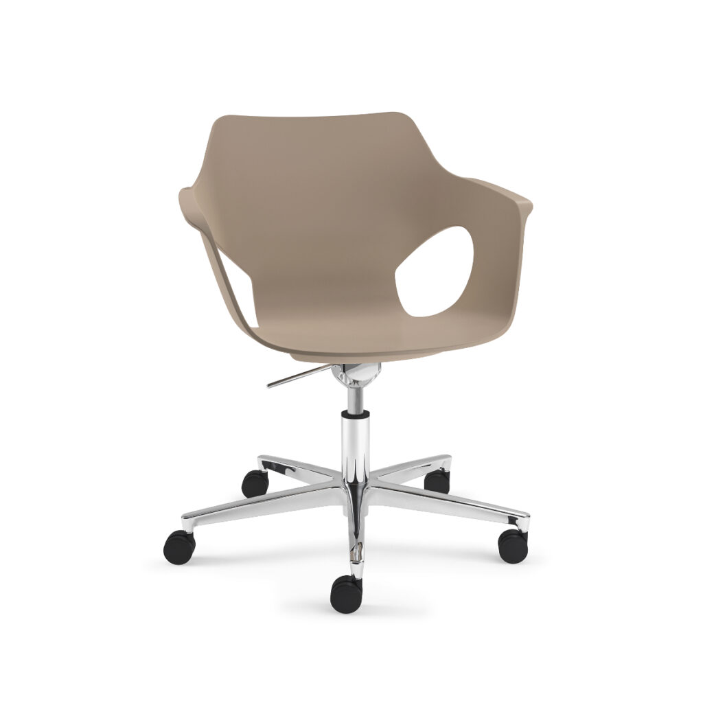 Le siège qui vous fait les yeux doux. Avec ses deux trous dans le dossier, WALLY est la chaise qui vous regarde. Disponible en monocoque polypropylène ou bois, il se décline avec plusieurs piètements.