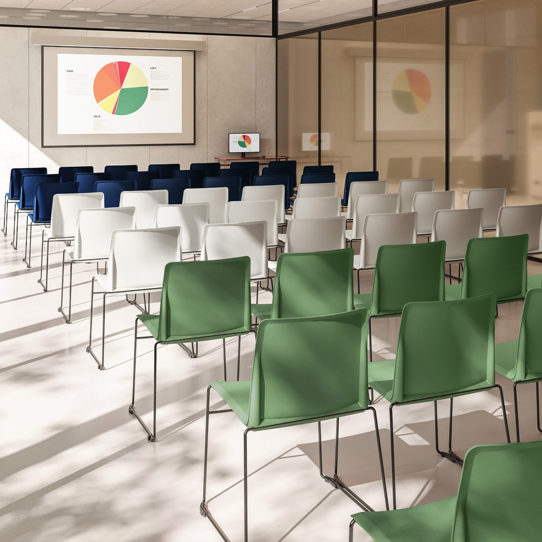 FLASHY est une chaise avec une monocoque polypropylène, 3 piètement au choix, 7 couleurs au choix