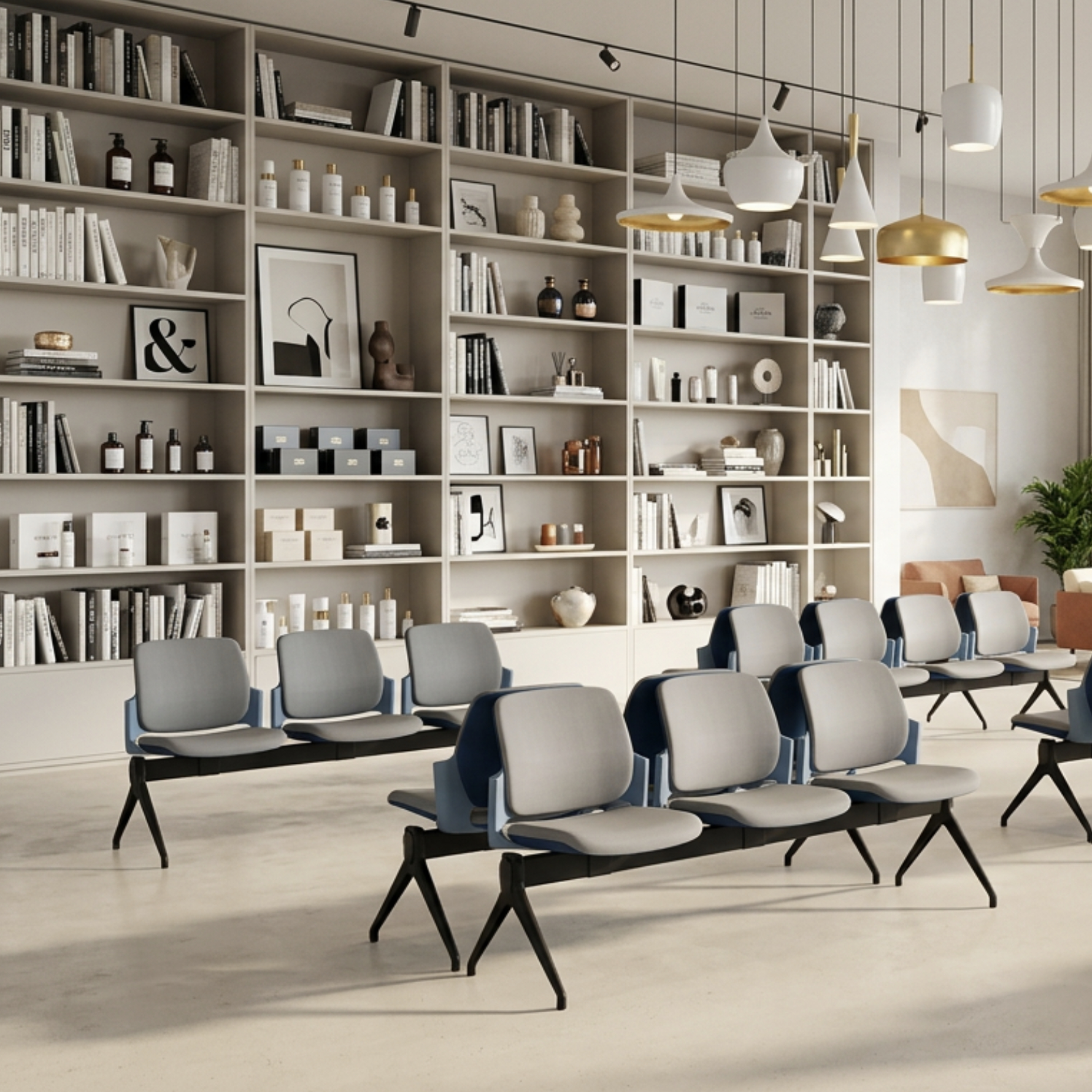 NAVY la poutre d’attente qui allie confort et design, assise et dossier polypropylène, assise tapissée, existe de 2 à 5 places, 4 pieds au choix