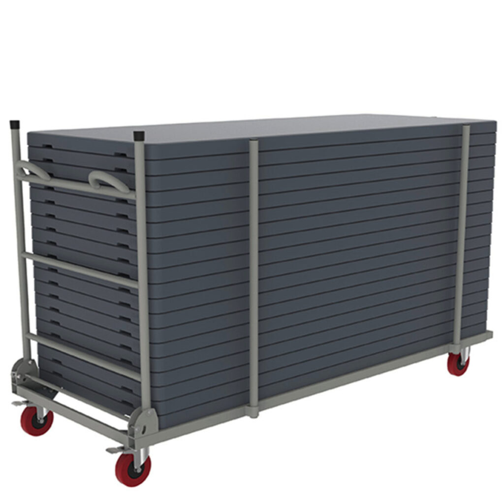 PLATO est une table pliante, classique, fonctionnelle, style universel, pliable, avec chariot de transport