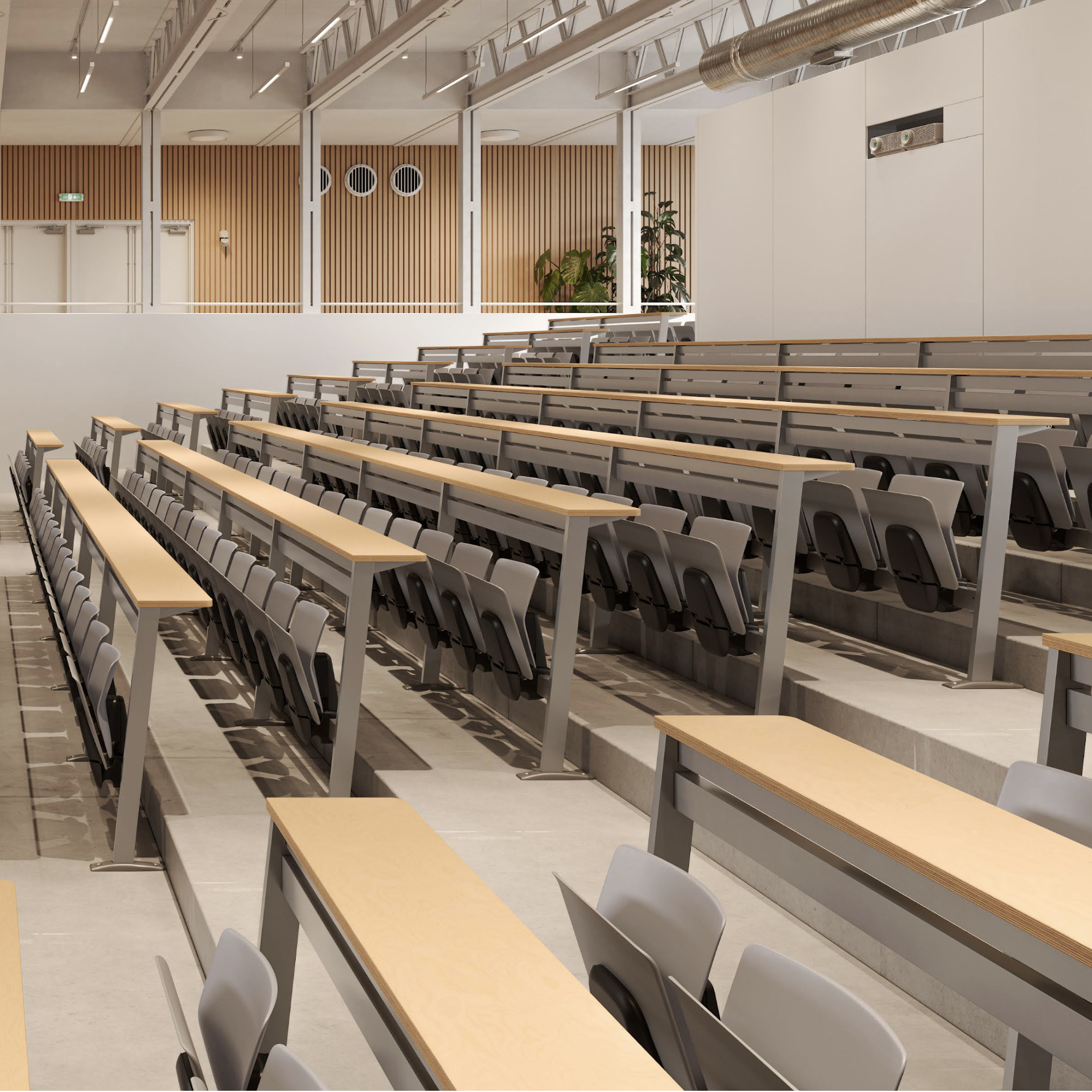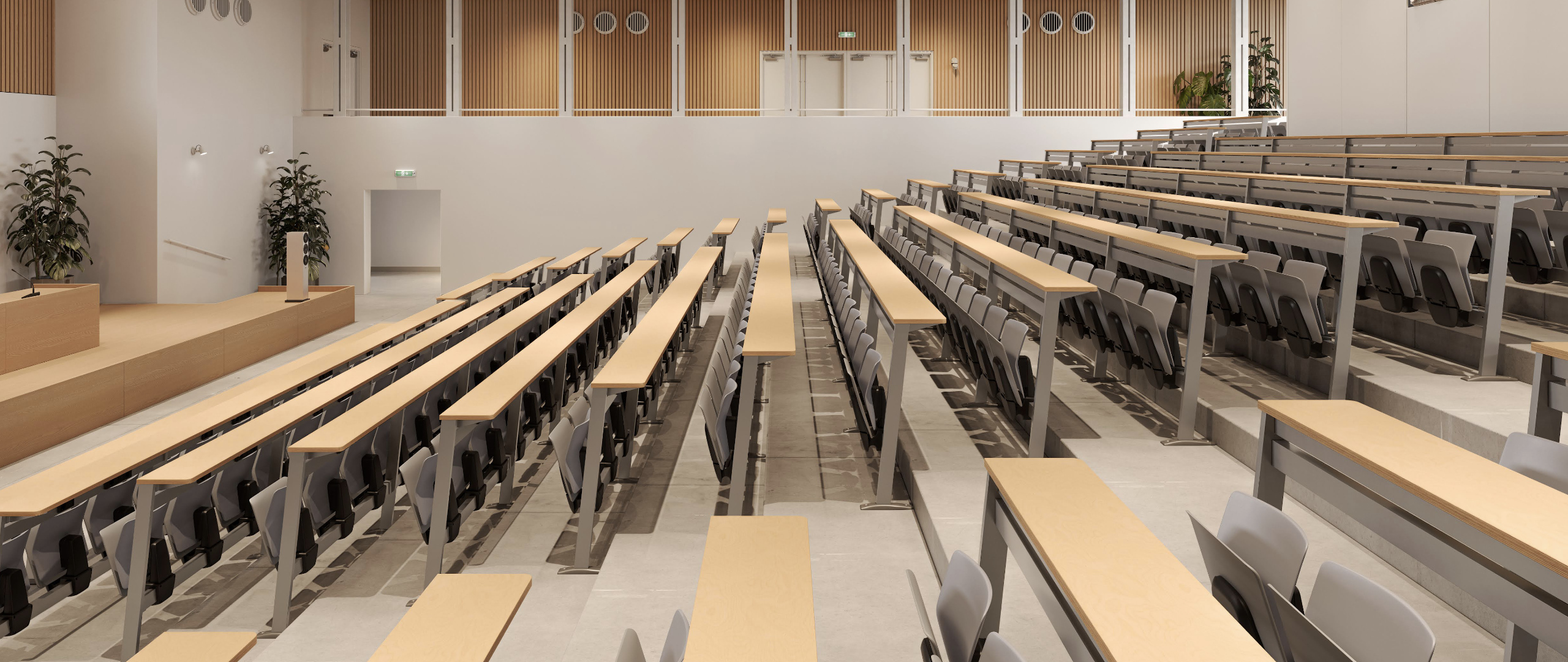 STYLO, c’est la gamme qui a compris qu’un amphithéâtre peut être sérieux … sans être ennuyeux. Avec sa coque en polypropylène (4 couleurs au choix), l’assise STYLO encaisse sans broncher les cours magistraux, les prises de note. Dès que l’on se lève, l’assise se replie toute seule, libérant le passage. Fixation au sol, voile de fond, elle offre une espace de travail net.