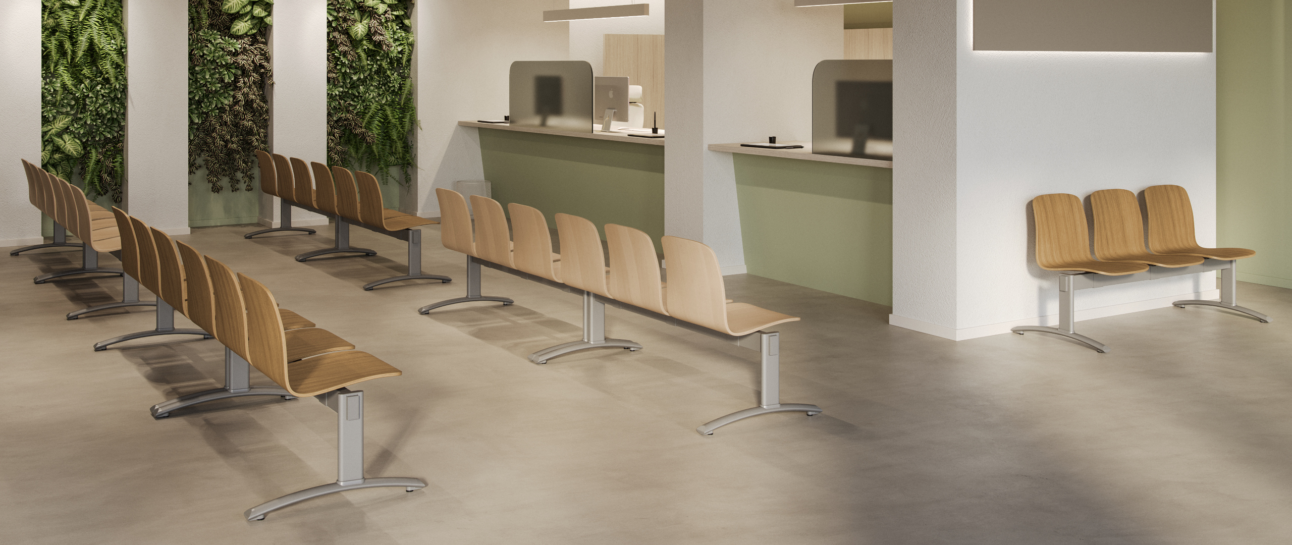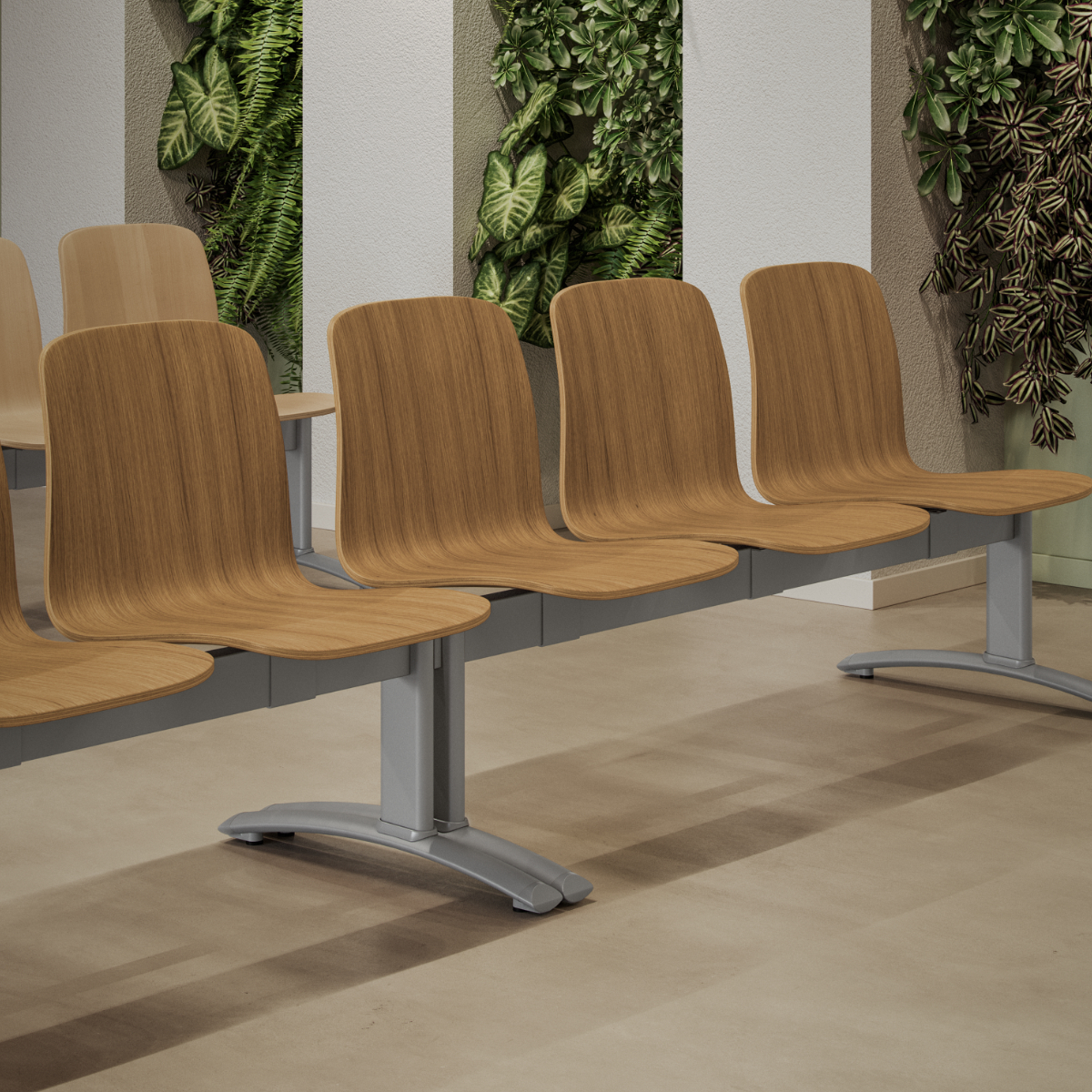 VESPA la poutre d’attente qui apporte une touche naturelle à vos espaces d’attente, monocoque Bois, existe de 2 à 5 places, 4 pieds au choix
